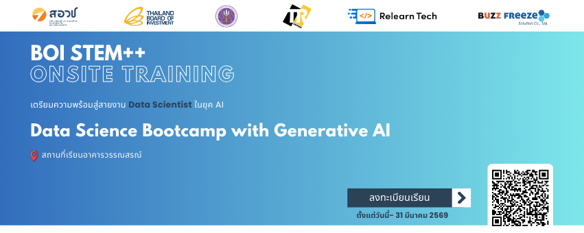 หลักสูตร Data Science Bootcamp with Generative AIเสริมทักษะการวิเคราะห์ข้อมูล ผสาน Generative AIเพื่อการตัดสินใจและการทำงานในองค์กรยุคดิจิทัล