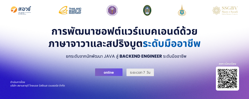 หลักสูตร การพัฒนาซอฟต์แวร์แบคเอนด์ด้วย ภาษาจาวาและสปริงบูตระดับมืออาชีพ